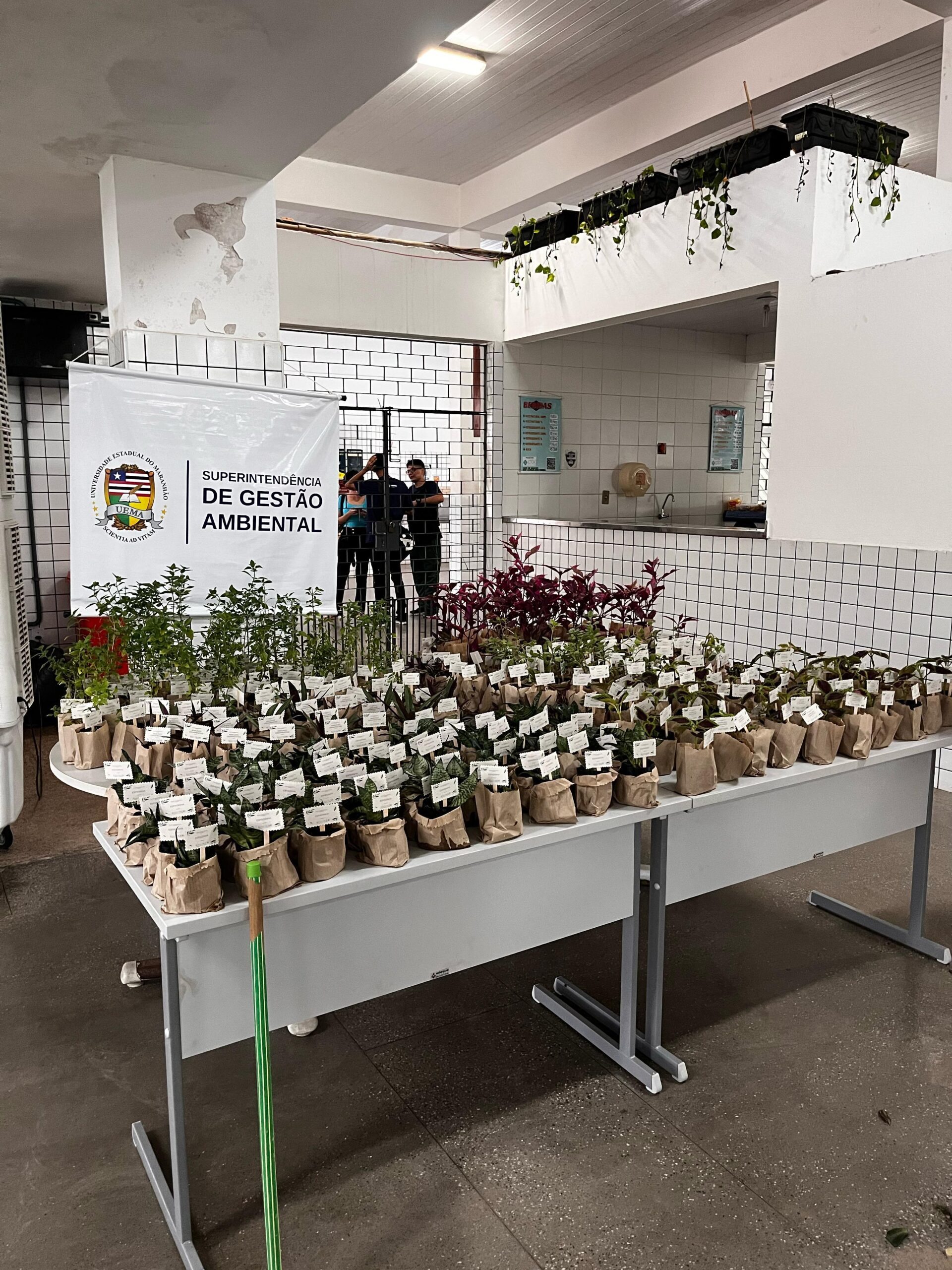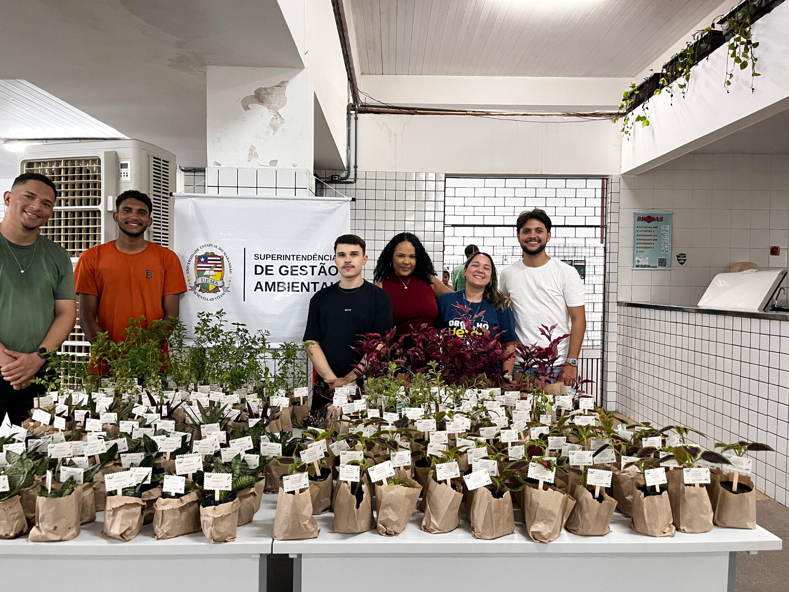No dia 21 de março, durante o Acolhimento Acadêmico 2025.1, a Superintendência de Gestão Ambiental realizou a distribuição de 500 mudas de plantas medicinais e ornamentais no Restaurante Universitário (RU) da Uema.