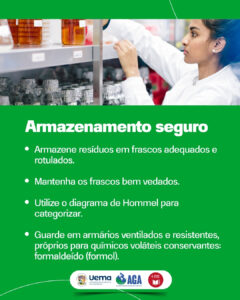 ✔️Armazene os resíduos em frascos adequados, rotulados com nome do resíduo e validade;