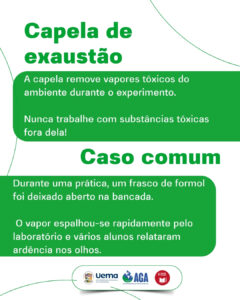 Resultado: exposição dos alunos a vapores tóxicos, desperdício do reagente e risco de incêndio