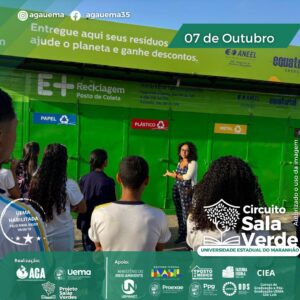 Durante os circuitos, desenvolvemos ações sobre práticas sustentáveis, no contêiner da AGA (espaço físico da Sala Verde), e fizemos visitas técnicas ao ecoponto solidário.
