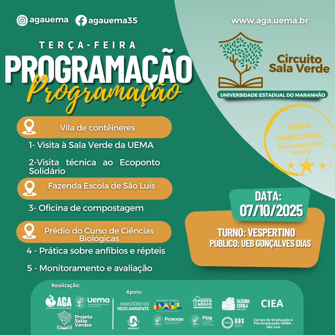 Com essas ações, a UEMA reafirma seu compromisso com a Educação Ambiental, em conformidade com a Lei Nº 9.795, e contribui com os ODS 4 (Educação de Qualidade) e ODS 17 (Parcerias), por meio das metas 4.7 e 17.17 da ONU 🌎✨