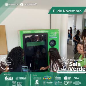 Durante os circuitos, desenvolvemos ações sobre práticas sustentáveis, no contêiner da AGA (espaço físico da Sala Verde), Retorna machine e o Ecoponto solidário.