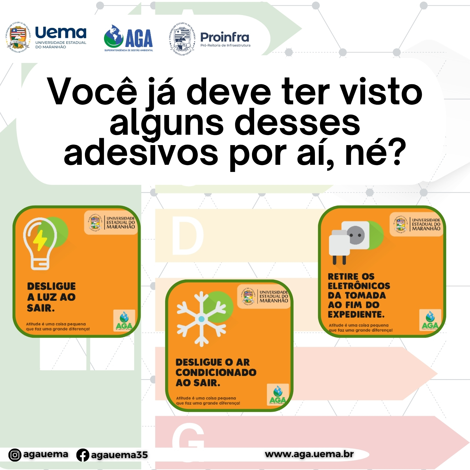 ✔️ Campanha de adesivagem educativa, com adesivos sinalizadores espalhados pelos ambientes da UEMA para sensibilizar sobre o uso consciente de energia.