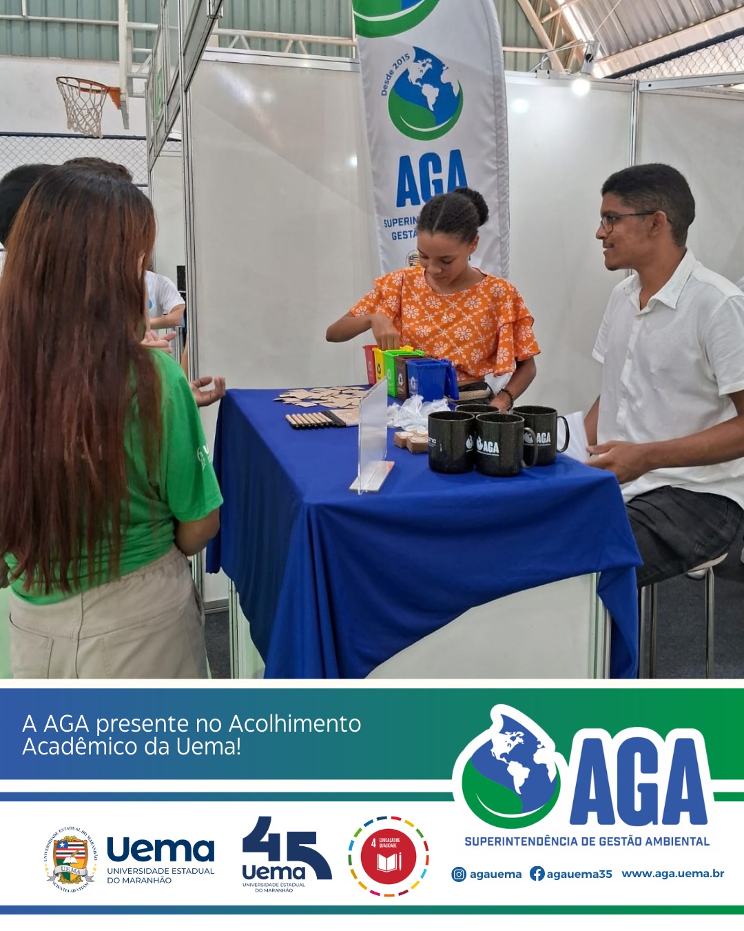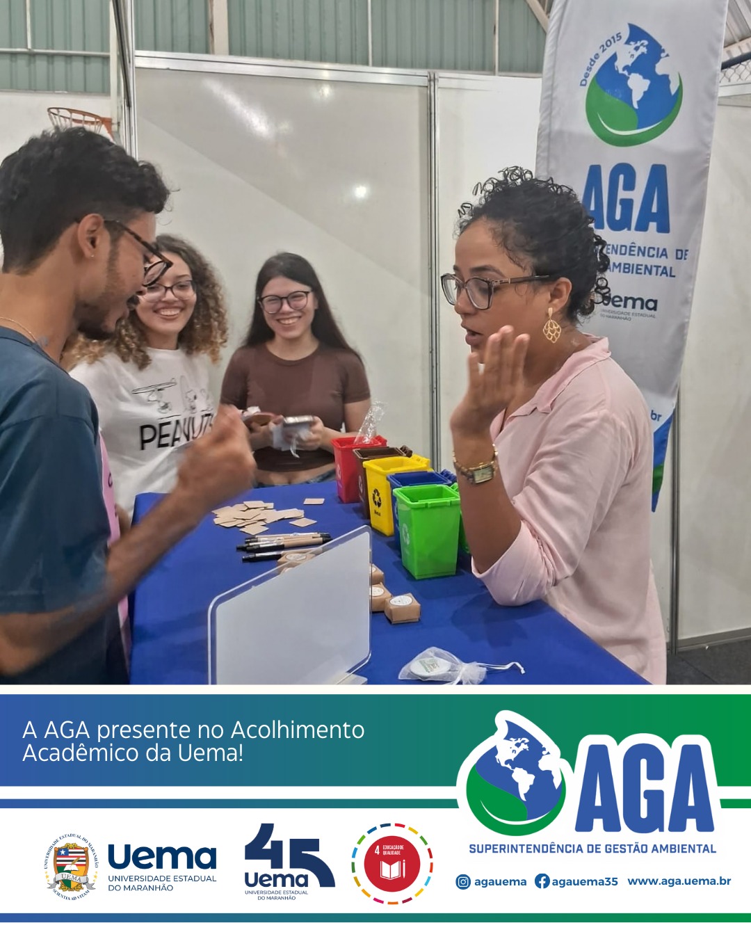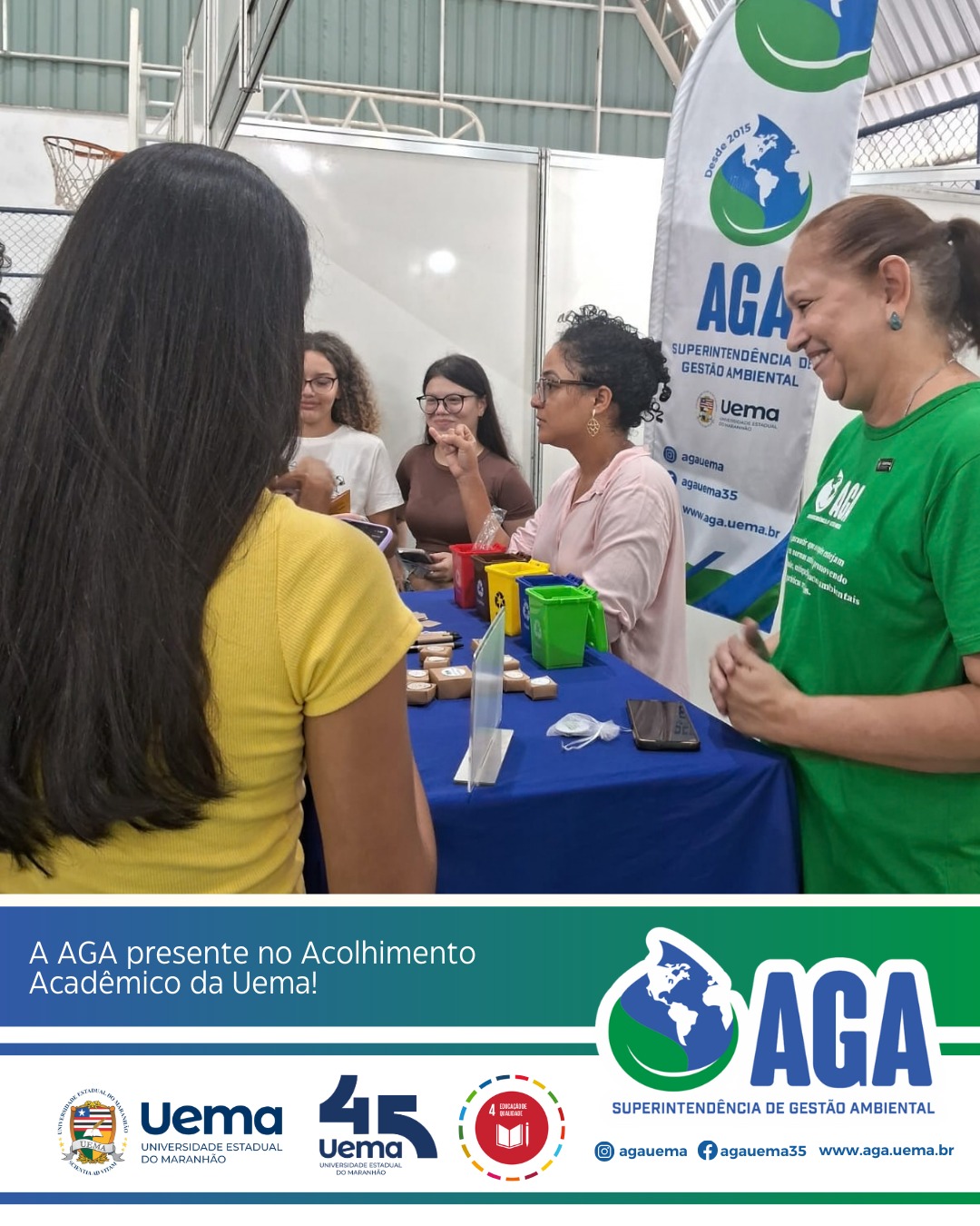 A Superintendência de Gestão Ambiental (AGA/UEMA) está participando com muita alegria do Acolhimento Acadêmico da Universidade Estadual do Maranhão, organizado pela Pró-Reitoria de extensão e assuntos estudantis (PROEXAE), um momento especial de integração e boas-vindas aos estudantes da universidade.