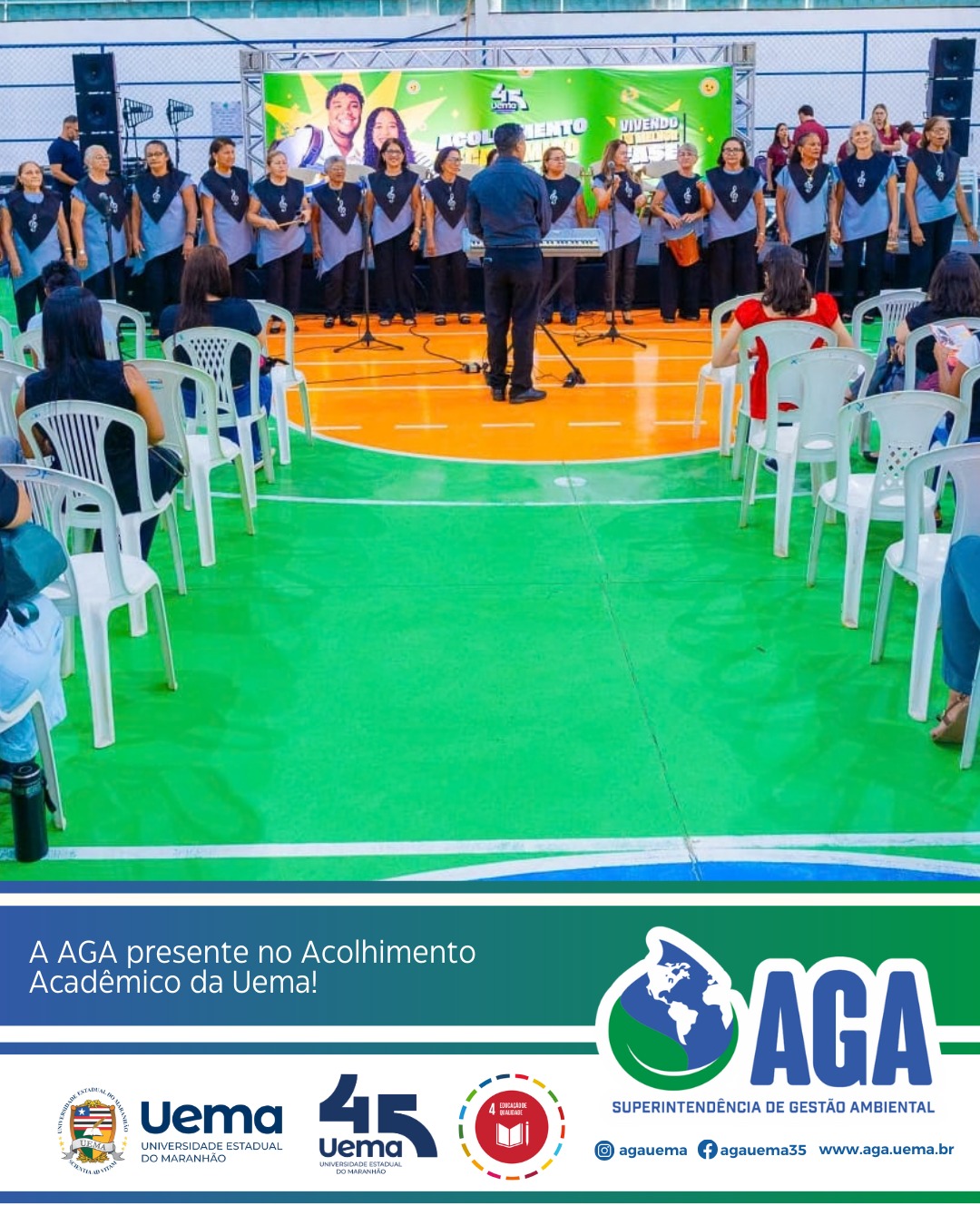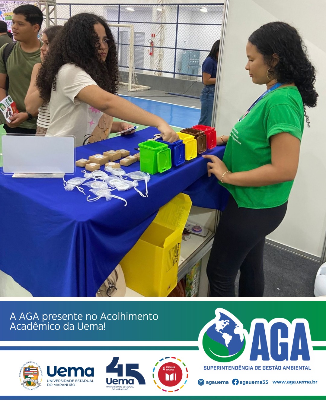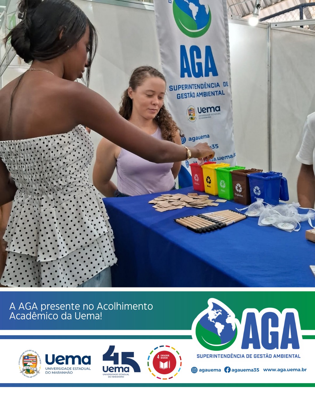 A Superintendência de Gestão Ambiental (AGA/UEMA) está participando com muita alegria do Acolhimento Acadêmico da Universidade Estadual do Maranhão, organizado pela Pró-Reitoria de extensão e assuntos estudantis (PROEXAE), um momento especial de integração e boas-vindas aos estudantes da universidade.